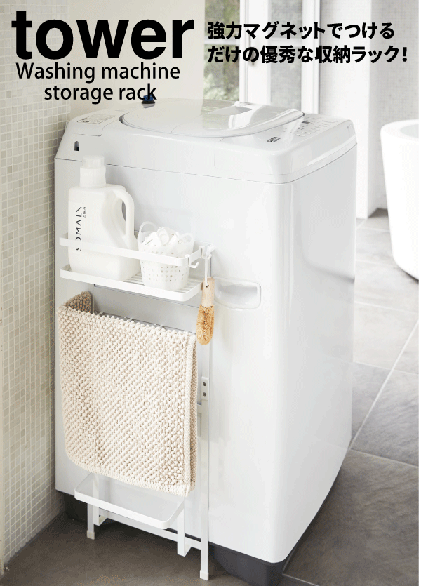 便利な収納ラック!珪藻土マットやバスブーツ、洗濯用洗剤、洗濯ネット、掃除用具、小物などを一括収納! サイズ(約) W28×11×11×67cm、製品重量/1600g 材質 本体:スチール(ユニクロメッキ+粉体塗装) キャップ:シリコーン マグネット ※付属品 フック×2・緩衝材×4 配送区分 【同梱OK】 備考 耐荷重/上部収納棚:約1.5kg・L字バー:約500g・フック:各約250g・下部収納:約4kg、対応サイズ/対応サイズ 幅約28cm以上の洗濯機または洗濯乾燥機の側面 上部収納棚内寸 約W27.5×D10×H7.5cm 下部収納内寸 約W21×D3×H21cm(珪藻土バスマット収納部) 約W20×D6.5cm(バスブーツ収納部)、組立式 こんな方におすすめ インテリア雑貨 おしゃれ インテリア 収納 yamazaki ヤマザキ 山崎実業 として