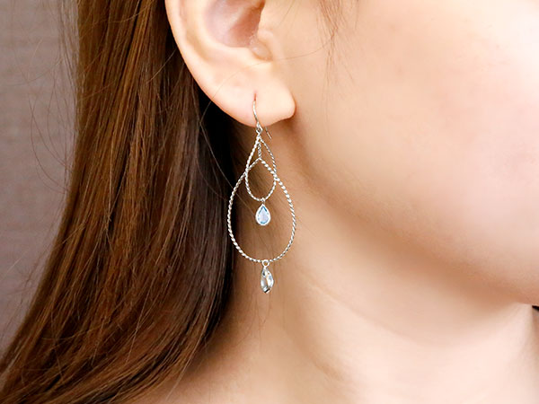 透明感のあるしずく型の天然石が瞬き、 グンと顔周りの印象を華やかにしてくれます。