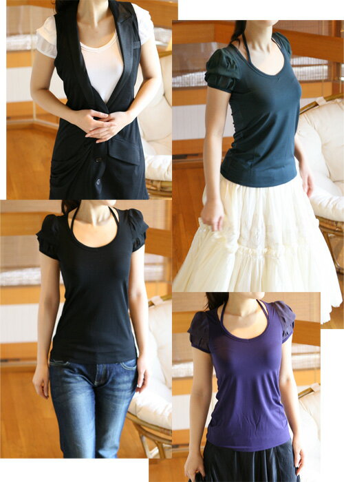 ☆詰め放題福袋チケット対象商品☆シフォンスリーブ・ホルターネック風・半袖カットソー[Re.Verofonna・ヴェロフォンナ]k fs3gm【送料無料】【smtb-k】【w4】